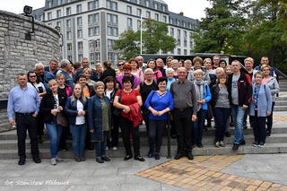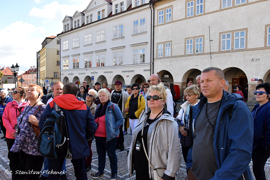 Wycieczka Koła Gospodyń Wiejskich z Szynwałdu. Koło Gospodyń zorganizowało trzydniową wycieczkę, w pierwszy dzień byliśmy we Wrocławskim ZOO i Afrykarium oraz oglądaliśmy Panoramę Racławicką przedstawiającą bitwę pod Racławicami (1794). Następnego dnia pojechaliśmy do Pragi, gdzie zwiedzaliśmy z przewodnikiem zabytki i stare miasto. W ostatnim dniu wycieczki zwiedzaliśmy indywidualnie Karpacz oraz zabytkowy kościół ewangelicki "Wang" z XII w. (fot. Stanisław Plebanek 2019-10-10)