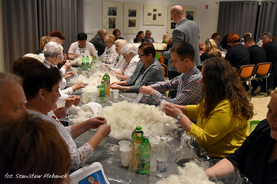 Wyskubek w Szynwałdzie. W Bibliotece odbył się wyskubek, gdzie kobiety ze stowarzyszeń i Kół Gospodyń Wiejskich z Gminy Skrzyszów skubały pierze. Było to przypomnienie i podtrzymywanie tradycji ludowych, dawniej w każdym domu były pierzyny i poduszki wykonane z gęsiego pierza. Po krótkim przedstawieniu tradycji skubania, kobiety, jak również mężczyźni zabrali się do pracy. Każda grupa miała za zadanie zrobienie małej poduszeczki, przy wyskubku śpiewał zespół ludowy Swojacy.