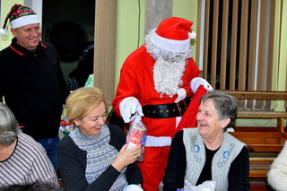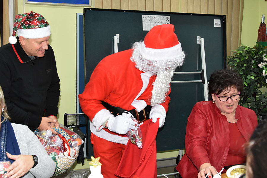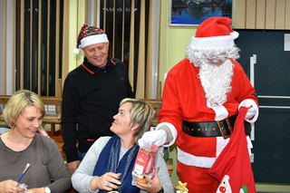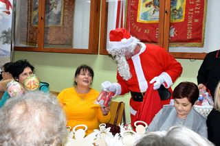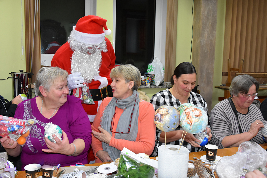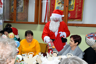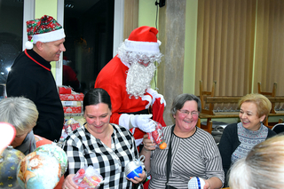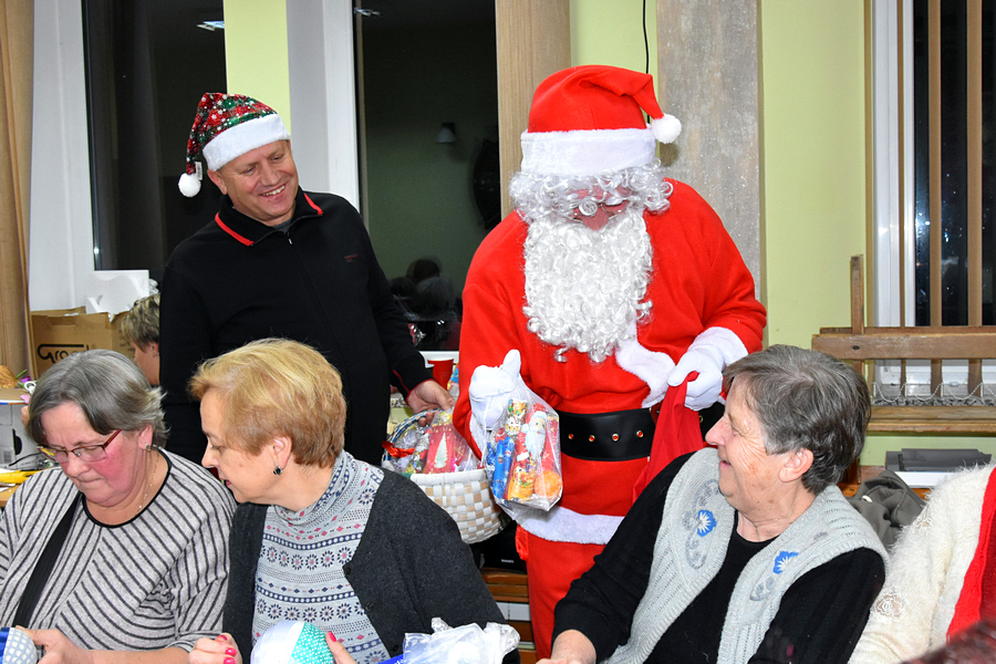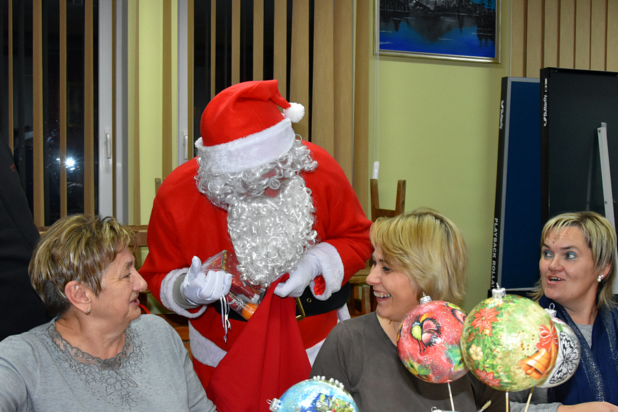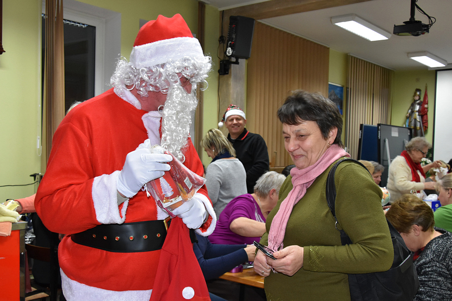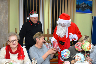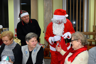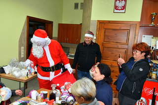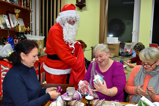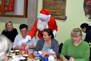 Mikołaj w Kole Gospodyń. Do naszego Koła przybył Mikołaj. A że wszystkie Panie były grzeczne, dobre dla mężów, dzieci, zięciów, synowych i wnuków. To każda Pani otrzymała prezent, nie zabrakło również prezentu dla Mikołaja, za który serdecznie podziękował. (2019-12-08)