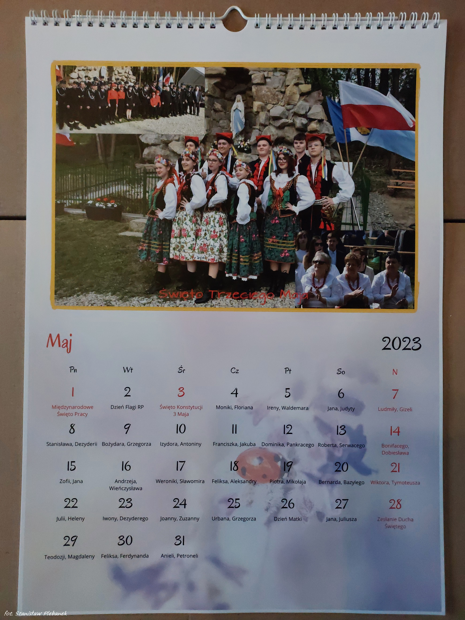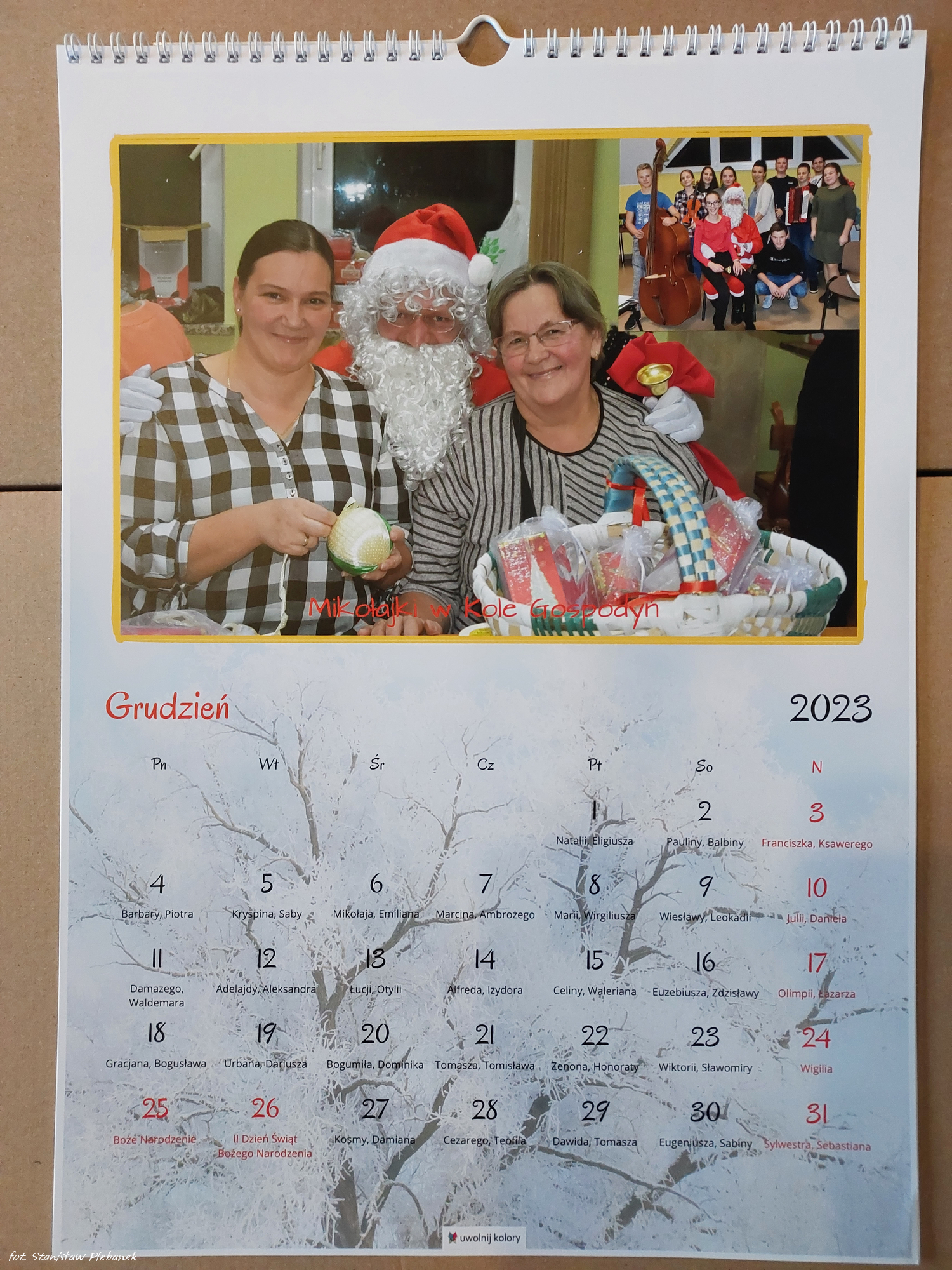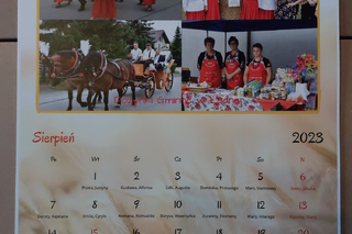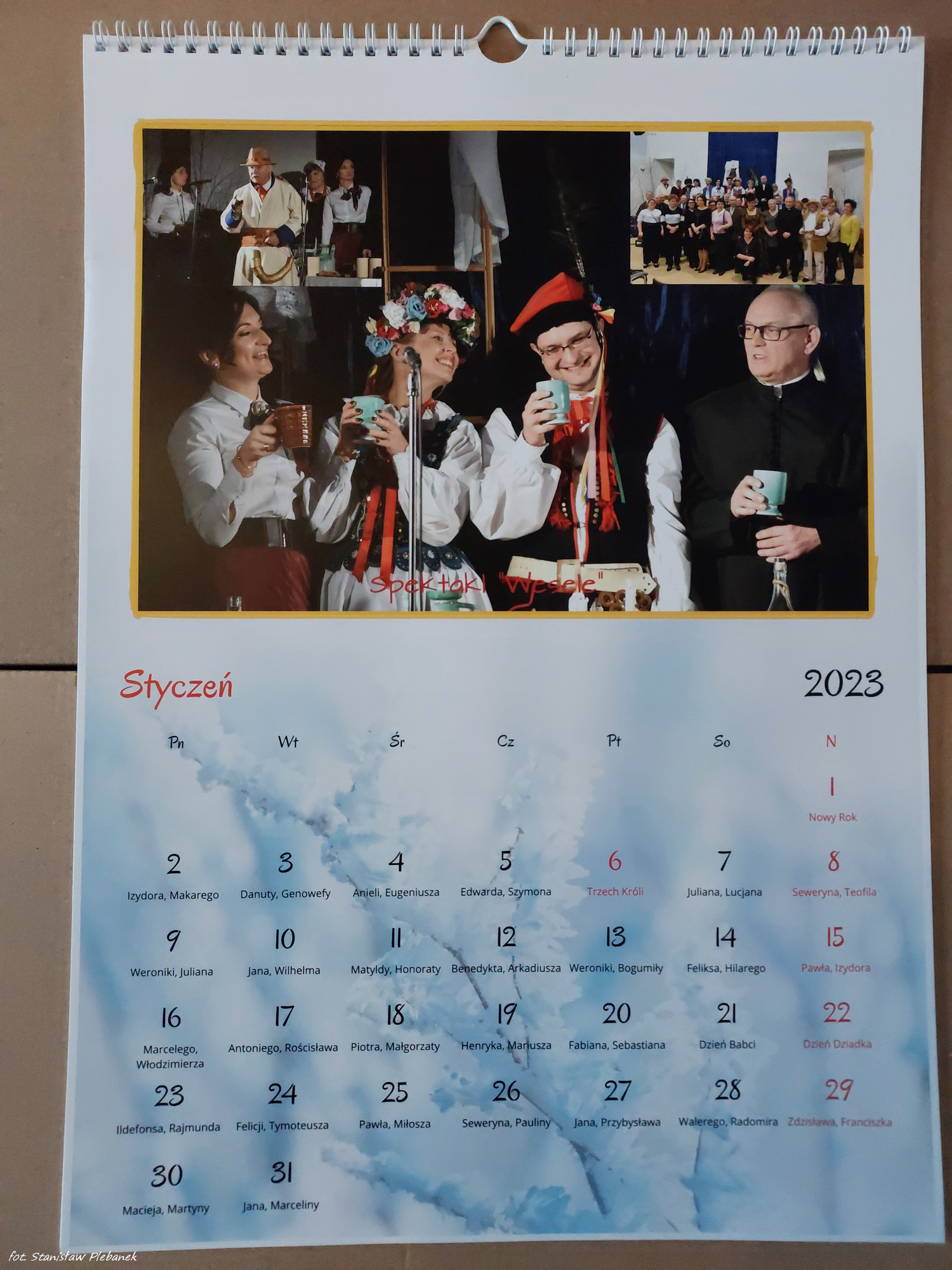 Kalendarz na rok 2023. Koło Gospodyń Wiejskich w Szynwałdzie wydało swój kalendarz na rok 2023. Na zdjęciach w kalendarzu są przedstawione różne wydarzenia organizowane przez Koło Gospodyń. Kalendarz będzie można kupić na Jarmarku Bożonarodzeniowym w Skrzyszowie 18 grudnia. (fot. Stanisław Plebanek 2022-12-11)