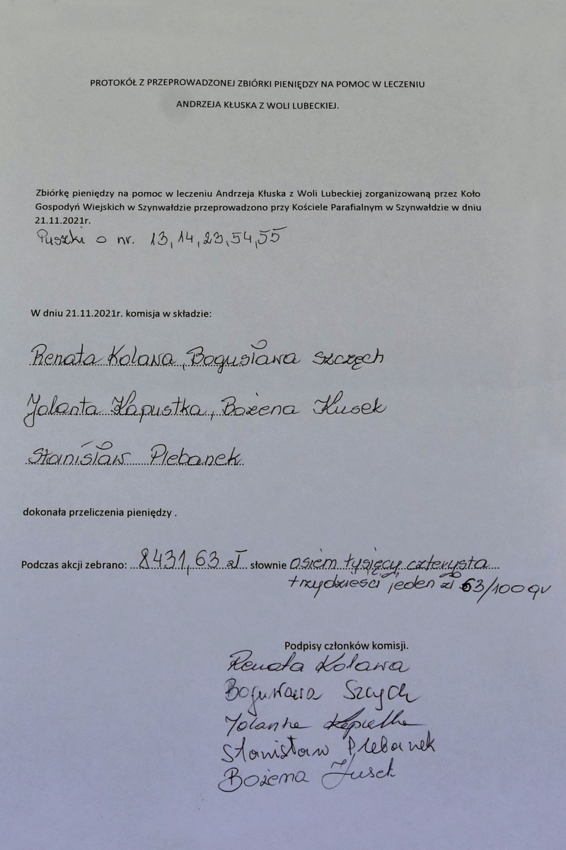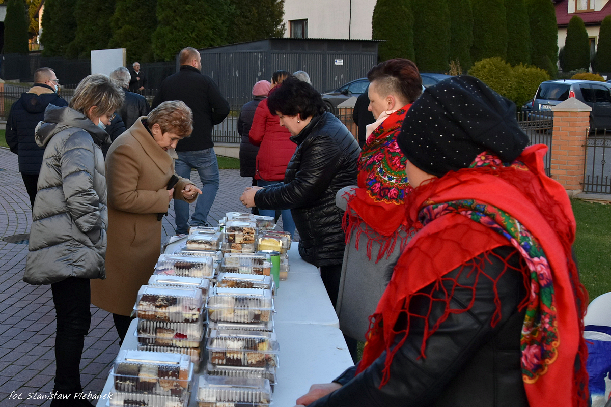 Kiermasz charytatywny. Koło Gospodyń Wiejskich w Szynwałdzie zorganizowało kiermasz ciast, z którego dochód został przeznaczony na leczenie Pana Andrzeja Kłusek. Jest on chory na nowotwór mózgu, glejak. Jeździł autobusem w firmie Mądel na trasie Kowalowa-Tarnów. Pan Andrzej musi przejść kosztowne leczenie w Niemczech. Na kiermaszu zebrano 8431,63zł. Serdecznie dziękujemy wszystkim, którzy wsparli finansowo leczenie, przez zakup ciast przygotowanych przez Panie z Koła Gospodyń. (fot. Stanisław Plebanek 2021-11-25)
