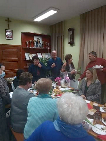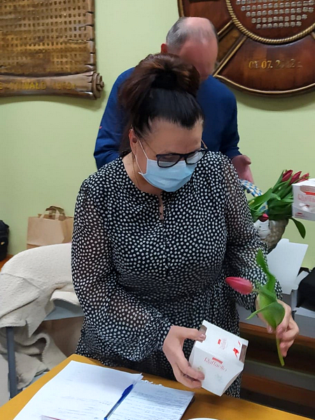 Dzień Kobiet w Kole Gospodyń w Szynwałdzie. Panowie z naszego Koła przygotowali nam miłą niespodziankę na dzień kobiet. Otrzymałyśmy tulipany i słodki prezent, za co z całego serca serdecznie dziękujemy. (2022-03-13)
