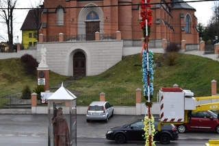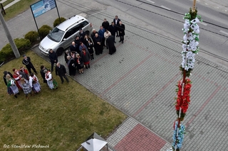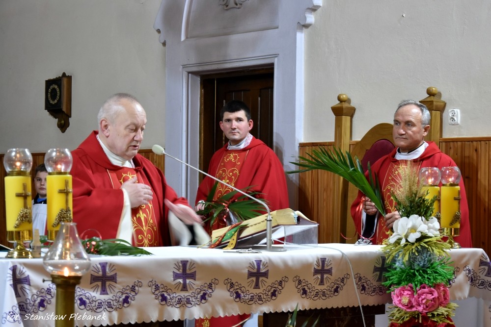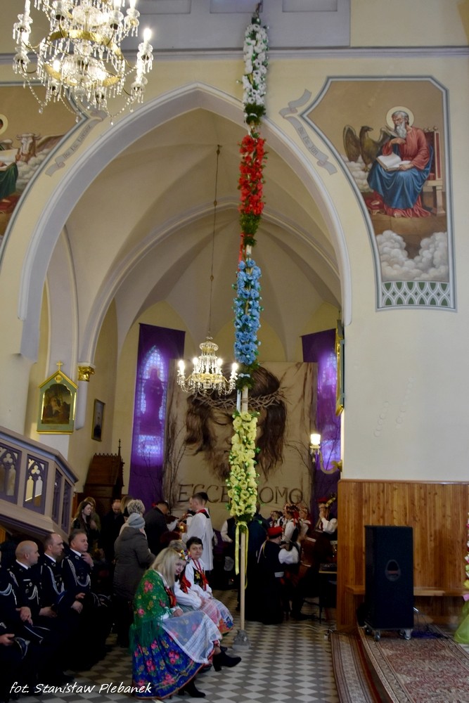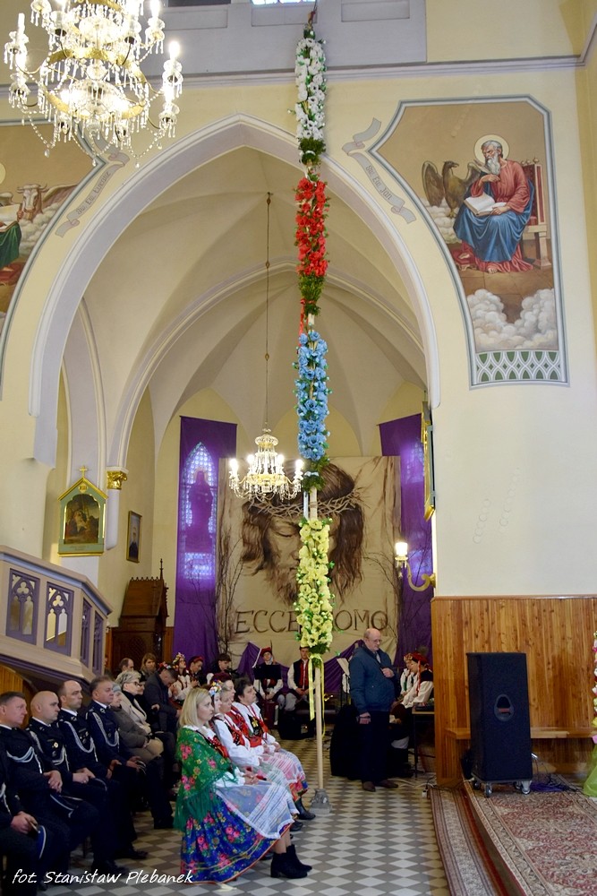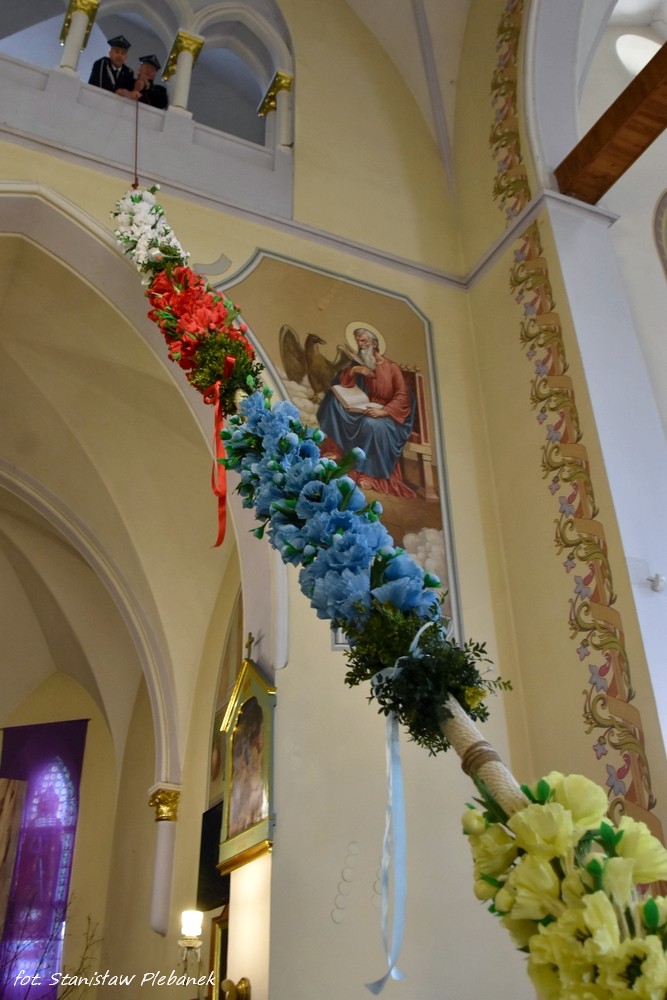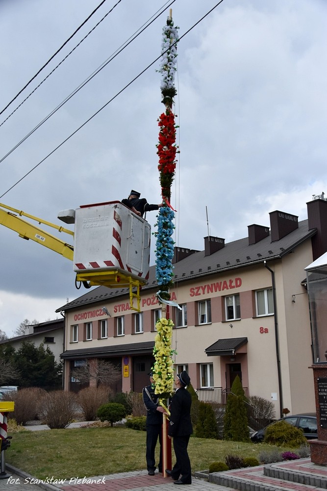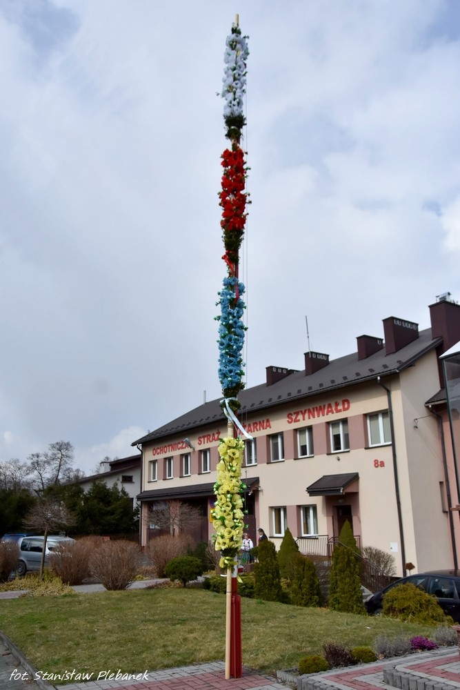 Niedziela Palmowa. W Niedzielę Palmową została poświęcona palma wielkanocna wykonana przez Koło Gospodyń Wiejskich w Szynwałdzie o wysokości niespełna 10 m. Palma została uroczyście wniesiona przez panie z Koła ubrane w stroje ludowe oraz przez Strażaków z OSP w Szynwałdzie. W tym roku postanowiliśmy wykonać palmę w kolorach flag Polskiej i Ukraińskiej, okazując przez to znak solidarności polaków z Ukraińcami walczącymi w swoim kraju o niepodległość. W uroczystej mszy uczestniczyli zaproszeni goście członkinie Koła Gospodyń, parafianie oraz część uchodźców wojennych mieszkających tymczasowo w naszej miejscowości. Palma obecnie stoi przed remizą OSP, gdzie można przyjść i zobaczyć najwyższą palmę w Szynwałdzie. Serdecznie dziękujemy wszystkim gościom i mieszkańcom Szynwałdu za uczestniczenie w Niedzieli Palmowej i podtrzymywanie tradycji ludowej święcenia palm wielkanocnych. (fot. Stanisław Plebanek 2022-04-19)