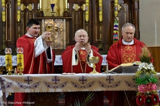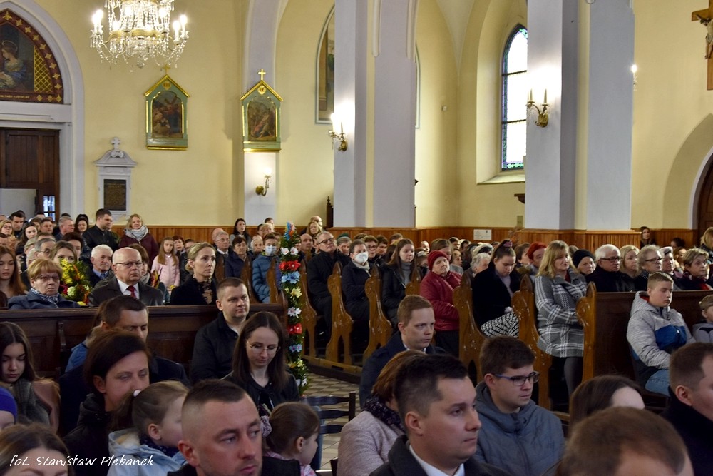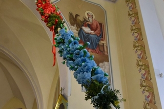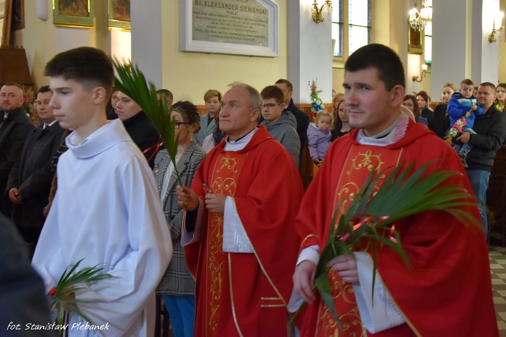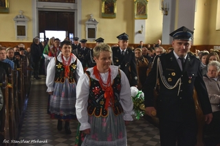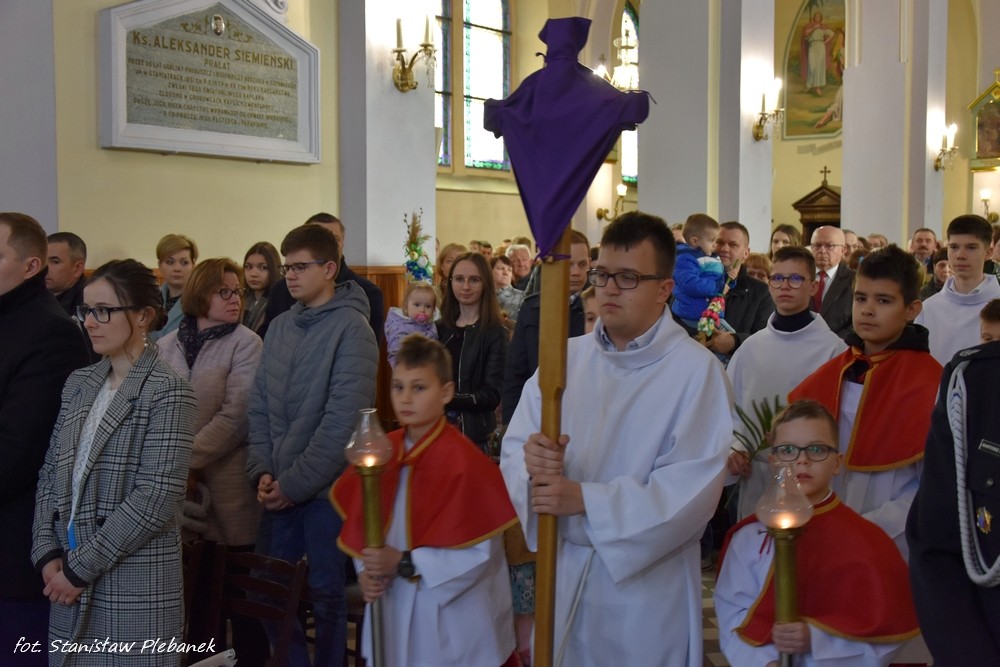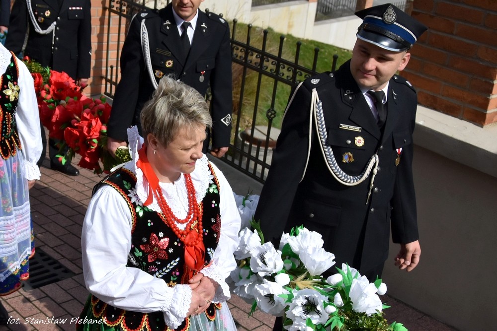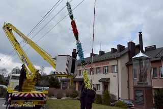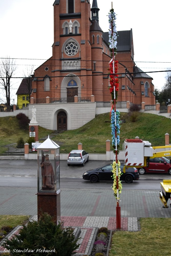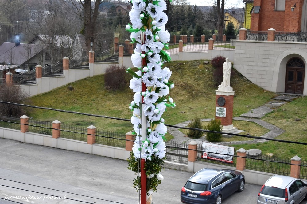 Niedziela Palmowa. W Niedzielę Palmową została poświęcona palma wielkanocna wykonana przez Koło Gospodyń Wiejskich w Szynwałdzie o wysokości niespełna 10 m. Palma została uroczyście wniesiona przez panie z Koła ubrane w stroje ludowe oraz przez Strażaków z OSP w Szynwałdzie. W tym roku postanowiliśmy wykonać palmę w kolorach flag Polskiej i Ukraińskiej, okazując przez to znak solidarności polaków z Ukraińcami walczącymi w swoim kraju o niepodległość. W uroczystej mszy uczestniczyli zaproszeni goście członkinie Koła Gospodyń, parafianie oraz część uchodźców wojennych mieszkających tymczasowo w naszej miejscowości. Palma obecnie stoi przed remizą OSP, gdzie można przyjść i zobaczyć najwyższą palmę w Szynwałdzie. Serdecznie dziękujemy wszystkim gościom i mieszkańcom Szynwałdu za uczestniczenie w Niedzieli Palmowej i podtrzymywanie tradycji ludowej święcenia palm wielkanocnych. (fot. Stanisław Plebanek 2022-04-19)